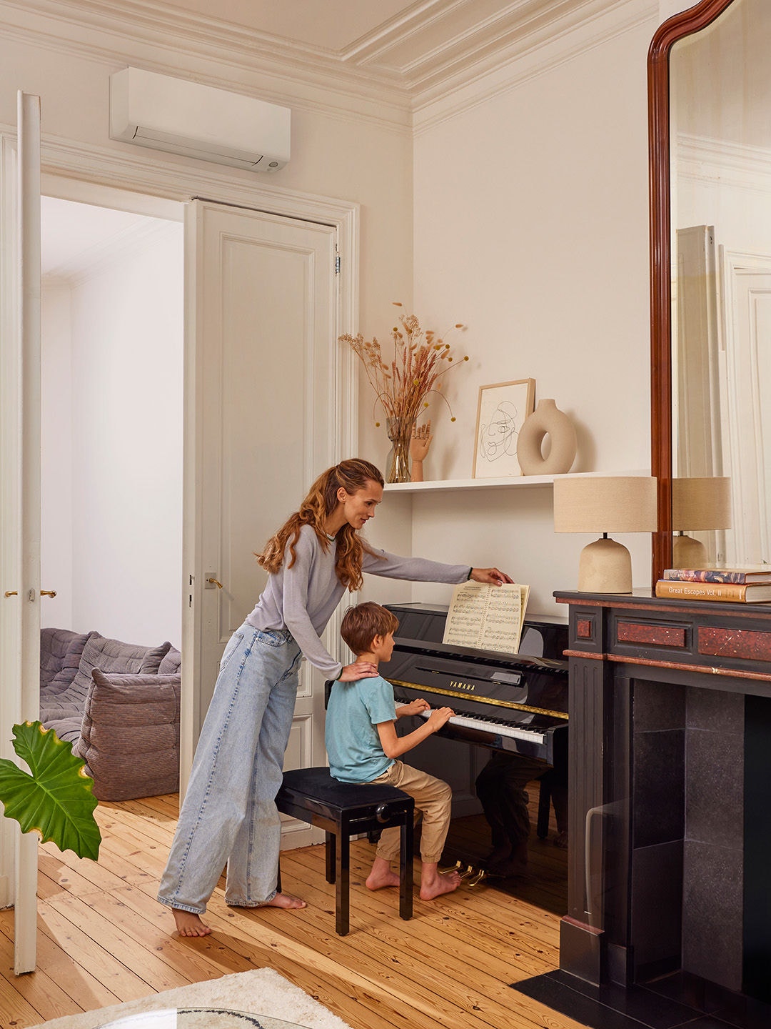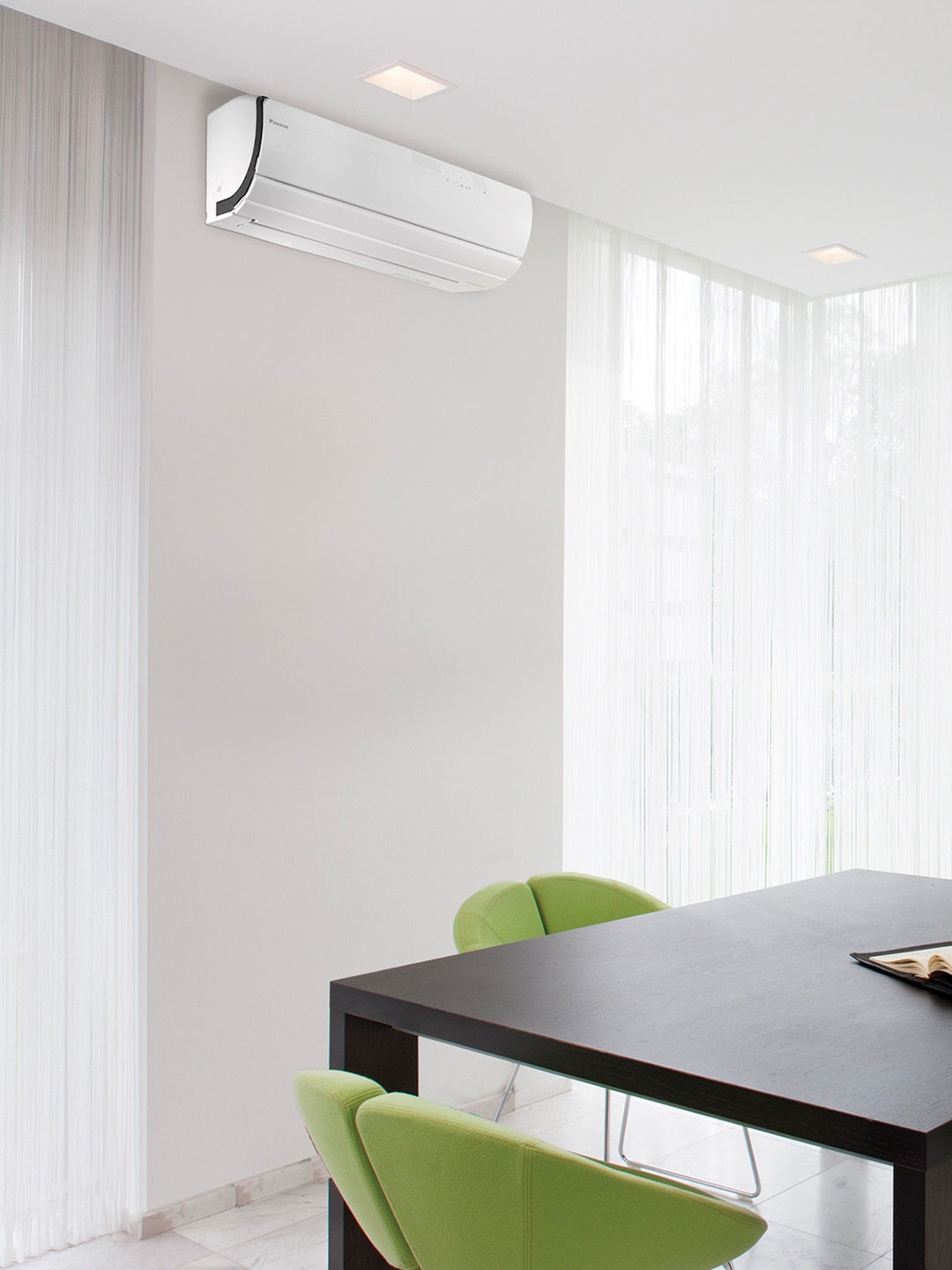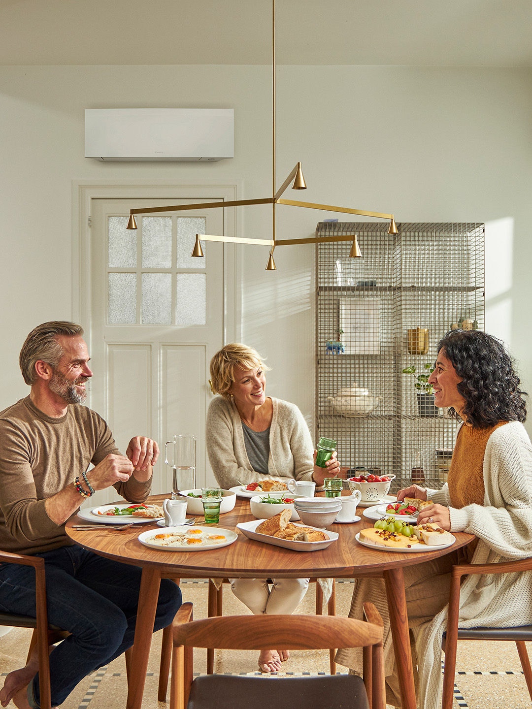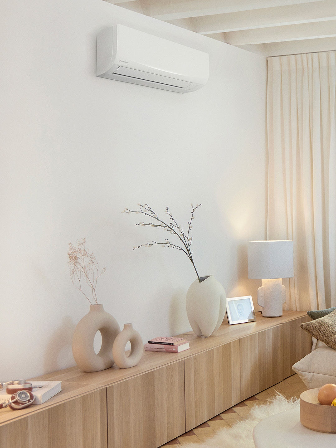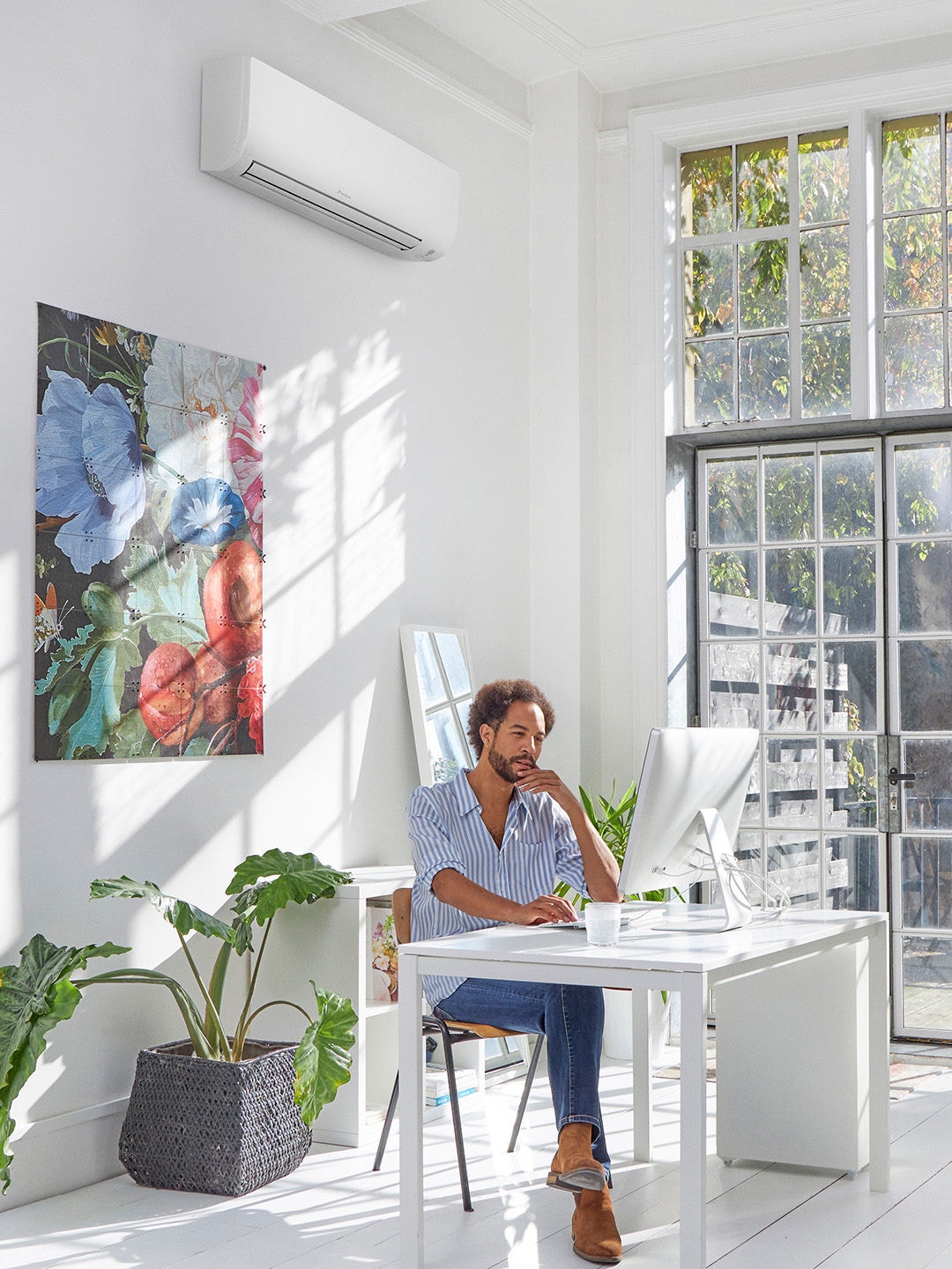 Daikin, lider mondial în domeniul aerului condiționat⁴), oferă o gamă variată de pompe de căldură aer-aer, potrivite pentru orice buget și pentru cerințele specifice ale fiecărei locuințe. Disponibile în variante montate pe perete, de tip consolă (la nivelul podelei) sau cu distribuție prin conducte, acestea pot fi utilizate atât în sisteme monosplit (o unitate exterioară și una interioară), cât și în sisteme multi-split (o unitate exterioară și până la 5 unități interioare).