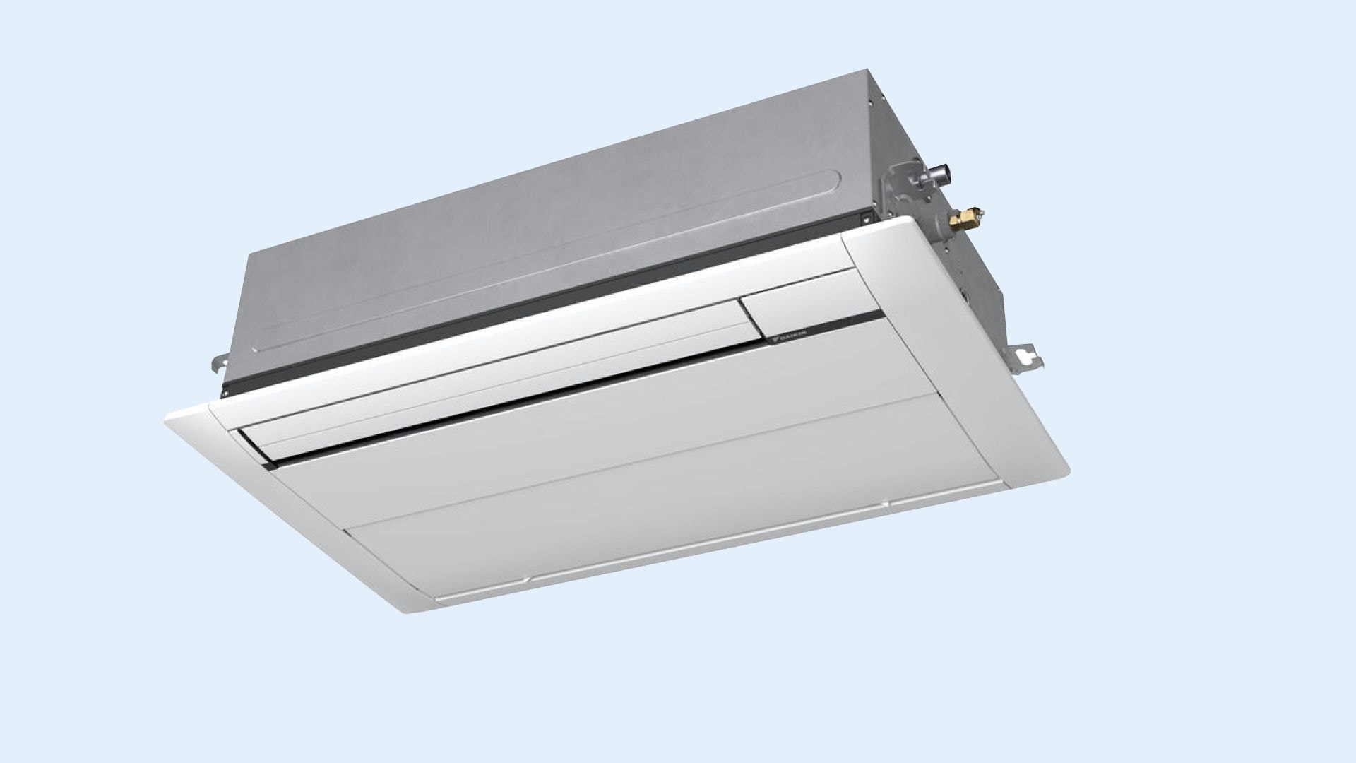 Aspectul modern și elegant al casetei cu suflare unidirecțională aduce un plus de atractivitate în orice interior, indiferent de designul încăperii. Caseta este extrem de discretă și compactă, reduce foarte mult spațiul necesar pentru instalarea în tavan și permite instalarea în goluri înguste, chiar și de numai 260 mm. De asemenea, se mândrește și cu o clapă de aspirație unică, care îmbunătățește aspectul general, permițând casetei să fie aproape insesizabilă în încăpere atunci când nu este în funcțiune, prin închiderea completă a grilajului de aspirație.
