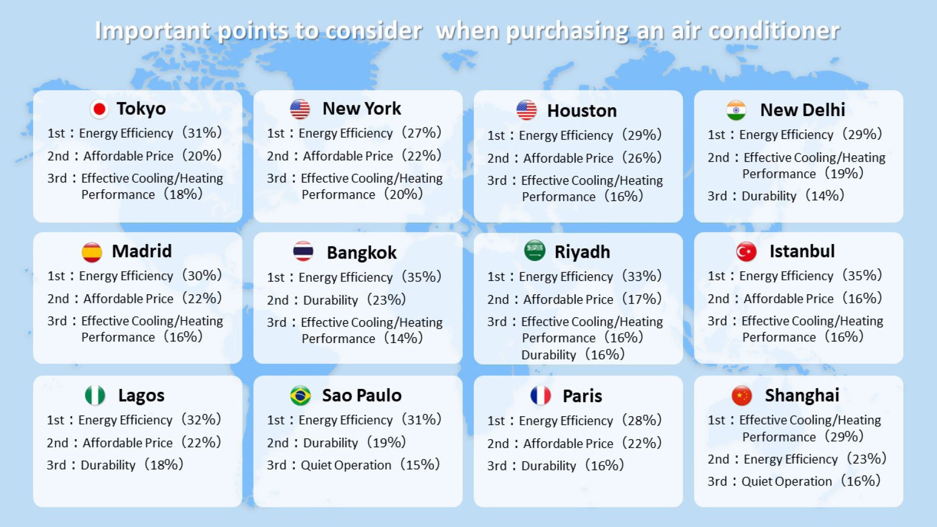*5 Respondents were asked to rank the most important factors when purchasing an air conditioner from 1 to 3. The rankings were then weighted, with the first choice receiving 3 points, the second choice 2 points, and the third choice 1 point, to calculate a weighted average.