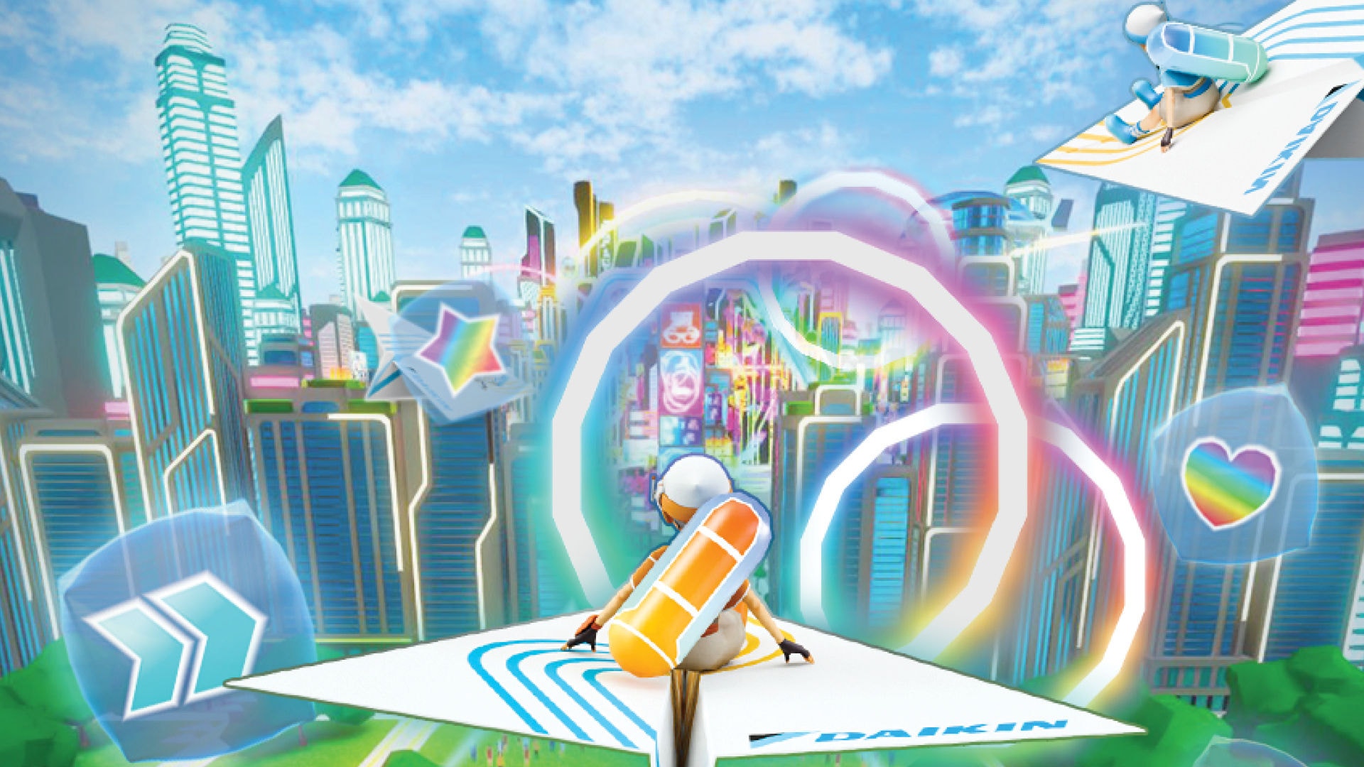 - Daikin Room oferă două expoziții VR suplimentare, unde participanții experimentează în mod direct importanța și potențialul aerului. În Daikin Air Island, vizitatorii pătrund într-o insulă magică, unde aerul invizibil devine vizibil. Acolo pot explora diferite tipuri de aer create de Daikin, precum „aer care îmbunătățește exercițiul fizic” și „aer care sporește concentrarea mentală”. În cadrul Daikin Air Factory, vizitatorii îl însoțesc pe Pichonkun într-o călătorie cu un avion de hârtie și experimentează într-un mod jucăuș cum este distribuit aerul confortabil în lume