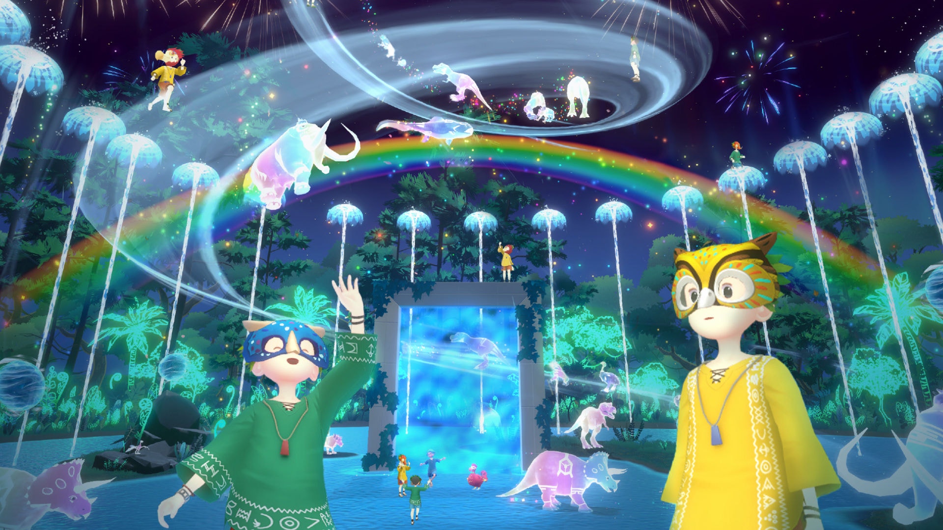 - Water Showroom oferă o experiență captivantă dedicată apei și aerului în lumea fermecată a spectacolului „Under the Midnight Rainbow”, recreat pentru vizitatorii online în locația Yumeshima. Elemente interactive permit participarea activă în poveste. Alăturându-se personajului principal Ao și companionului său Dodo, spiritul aerului și al apei, vizitatorii pot trăi experiența unui rezident insular și înțelege mai bine legăturile esențiale dintre apă, aer și viață. În acest mod, ei descoperă și cum Daikin și Suntory privesc aceste două elemente ca fiind fundamentale pentru un viitor sustenabil.