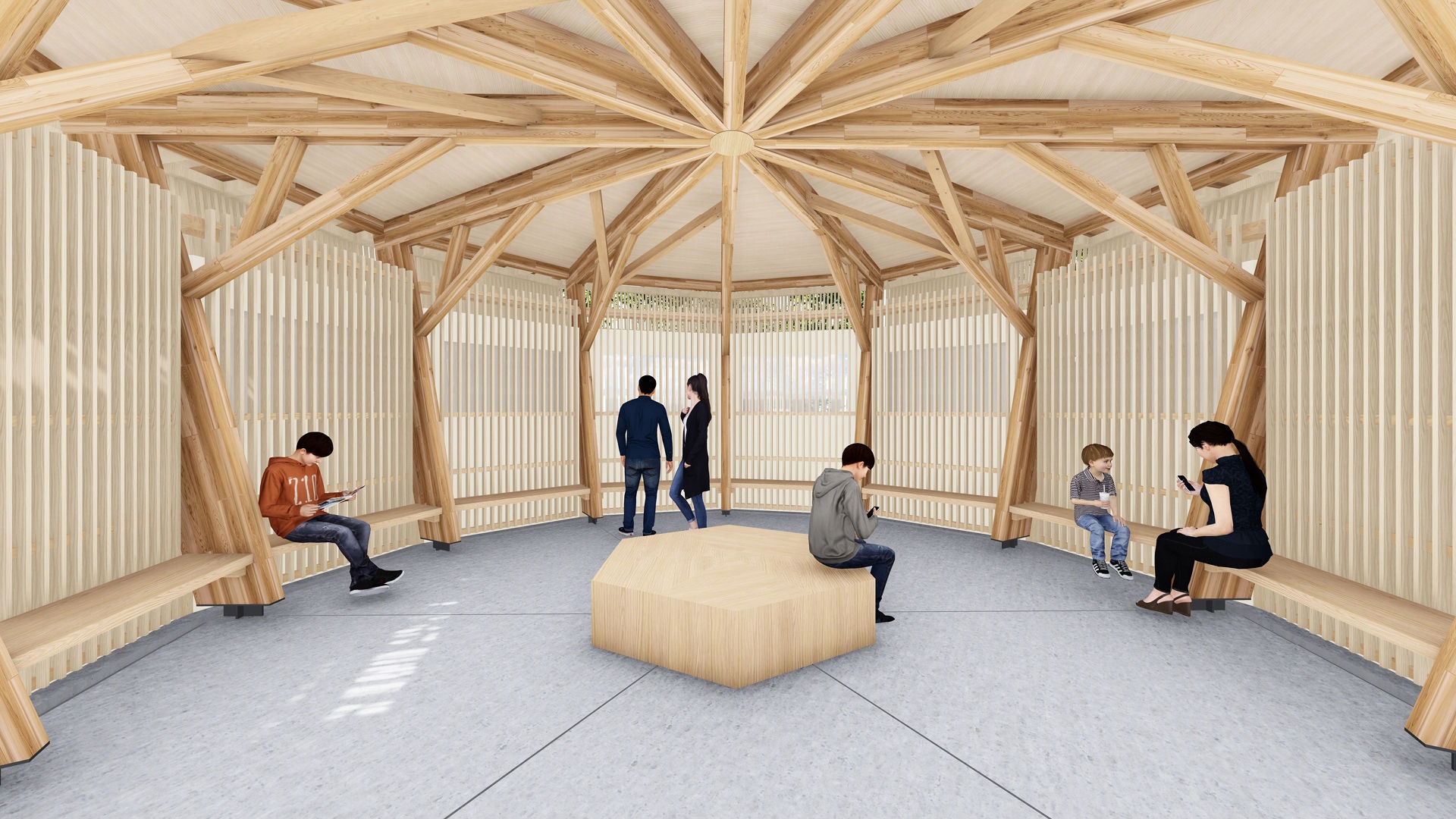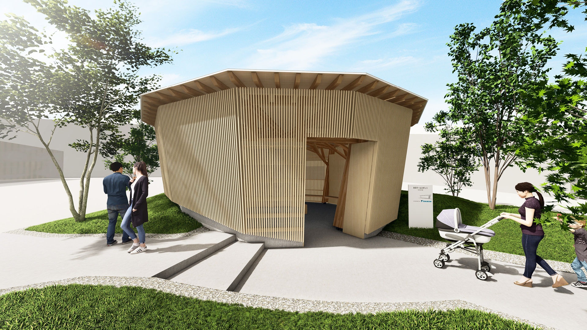 Ia o pauză din aglomerație și bucură-te de confortul oferit de zona de relaxare sustenabilă „Ice Cool Spot”, inspirată de gheața tradițional păstrată în depozitele de iarnă din trecut. Acest „spațiu exterior de răcorire de ultimă generație” folosește tehnologia de stocare termică pe bază de gheață marca Daikin și energia solară pentru a răci spațiile cu un consum minim de energie: