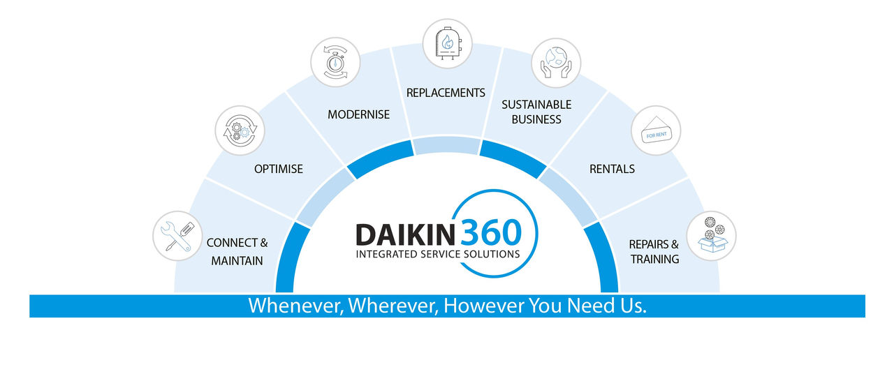 Daikin a fost de mult recunoscută ca lider în inovația HVAC, dar, în lumea de astăzi, clienții solicită mai mult decât sisteme cu performanță ridicată - au nevoie de soluții de service fiabile, pe termen lung. Daikin360 a fost creat pentru a răspunde acestei nevoi, consolidând diversele oferte de servicii ale Daikin sub un singur brand coeziv și recunoscut, asigurând clienților o abordare perfectă, de la un capăt la altul, asupra gestionării sistemului HVAC.