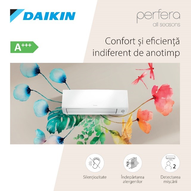 Daikin lansează noua generație a aparatului de aer condiționat rezidențial Perfera. Unitatea interioară montată pe perete a fost complet reproiectată, aducând beneficii de neegalat pentru utilizatori. Controlul climatului pe tot parcursul anului și purificarea aerului merg mână în mână cu planurile de economii, datorită eficienței energetice și performanței echipamentului, atât la temperaturi ambientale scăzute, cât și la temperaturi ridicate.