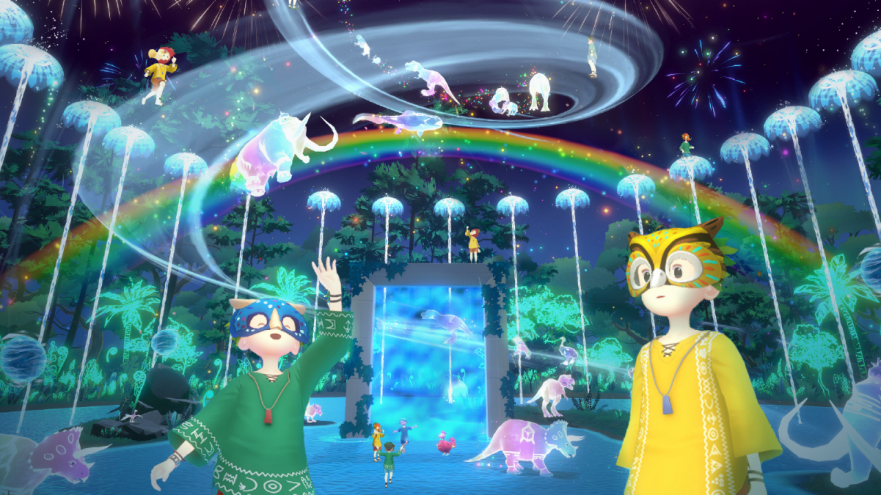 - Water Showroom oferă o experiență captivantă dedicată apei și aerului în lumea fermecată a spectacolului „Under the Midnight Rainbow”, recreat pentru vizitatorii online în locația Yumeshima. Elemente interactive permit participarea activă în poveste. Alăturându-se personajului principal Ao și companionului său Dodo, spiritul aerului și al apei, vizitatorii pot trăi experiența unui rezident insular și înțelege mai bine legăturile esențiale dintre apă, aer și viață. În acest mod, ei descoperă și cum Daikin și Suntory privesc aceste două elemente ca fiind fundamentale pentru un viitor sustenabil.